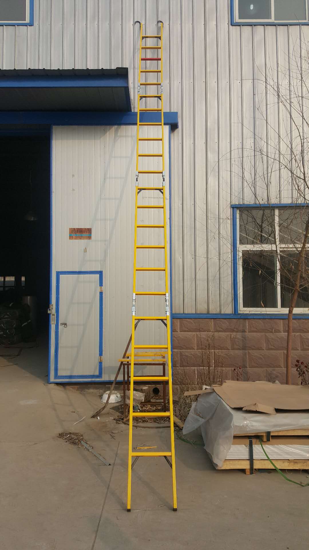 工艺:绝缘梯采不饱和树脂和玻璃纤维聚合拉挤制造工艺,材质选用环氧树脂结合销棒技术,轴类钢制件表面有防护镀层;绝缘层压类材料制件加工表面用了绝缘漆进行处理。梯撑、梯脚防滑设计不易疲劳,梯各部件外形无尖锐棱角,安全程度高,绝缘性能强;吸水力低,耐腐蚀。