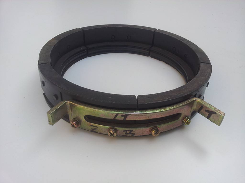 导绳器的作用:导绳螺母切成5块,由连接钢带和导绳板连成一体,钢丝绳从导绳板长形槽伸出。导绳螺母与卷筒绳槽啮合,卷筒转动驱动导绳螺母横向移动,以此保证钢丝绳在卷筒绳槽中不致乱扣。导绳板向卷筒两端横向移动,当达到极限位置时,带动安装在卷筒外壳上的限们杆一齐移动,到达极限位置触动安装在主电机上的限位开关而起限位作用。