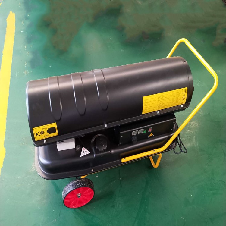 燃油暖风机是由通风机、电动机及散热器组合而成的联合机组。通过风机工作,强制空气循环,有利于空气加热及温度均衡,适合间断采暖的场所使用。燃油暖风机工作时,油箱中的燃料被吸入到喷油嘴,在燃烧室雾化后被点燃并燃烧。燃烧产生的热量加热空气及燃烧室壁,风扇送入的空气一部分送入燃烧室提供氧气助燃,燃油工业暖风机产生高温热气,大部分接触燃烧室外壁获得传导热量,产生热气。