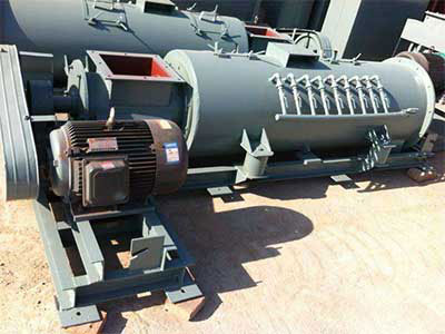 6.本机布置灵活,有链传动和直联两种形式,传动机构采用摆线式减速机。单轴粉尘搅拌加湿机由均匀供料、叶片输料、混合击打加湿,振动系统等四部分组成,并配以专用电控和供水系统。该粉尘加湿搅拌机设备整体固定在底座上,筒体由四组弹性元件支撑,通过激振装置,施以震动,使整机在运转过程中,筒体作高频振动,使筒壁与搅拌轴之间始终保持一定的间隙,使整机运转阻力大幅度减小,杜绝了闷机,堵转现象,减小停机清理时间,提高了工作效率。