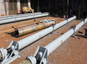 (4)LS、GX型螺旋输送机物料出口端,应设置1/2~1圈反向螺旋片,防止粉料堵塞端部。