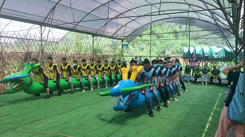 二、团队沟通-《驿站传书》:团队运作离不开有效的沟通;由每队后方人员找教练领取密码,在不用嘴,在前方人员的背上描述所掌握密码,依次传递下去,难度可以从简单的数字到字母到汉字等。