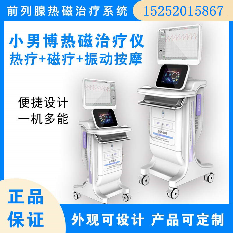 小男搏前列腺治疗仪,产品名称为热磁治疗仪,具有热疗功能、磁疗功能及治疗头断路报警功能、均衡振动按摩功能并显示治疗设置的温度、振动级别和时间。