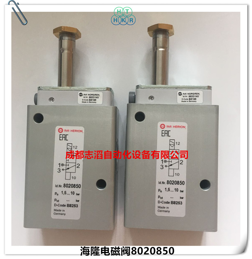 IMI HERION(海隆)电磁阀型号:8020850(技术参数:2位3通、接口尺寸G1/2、电控/气弹簧复位、流量3000l/min、相应时间25ms、阀体重量0.7kg、可以配海隆普通线圈0200、电压220V)