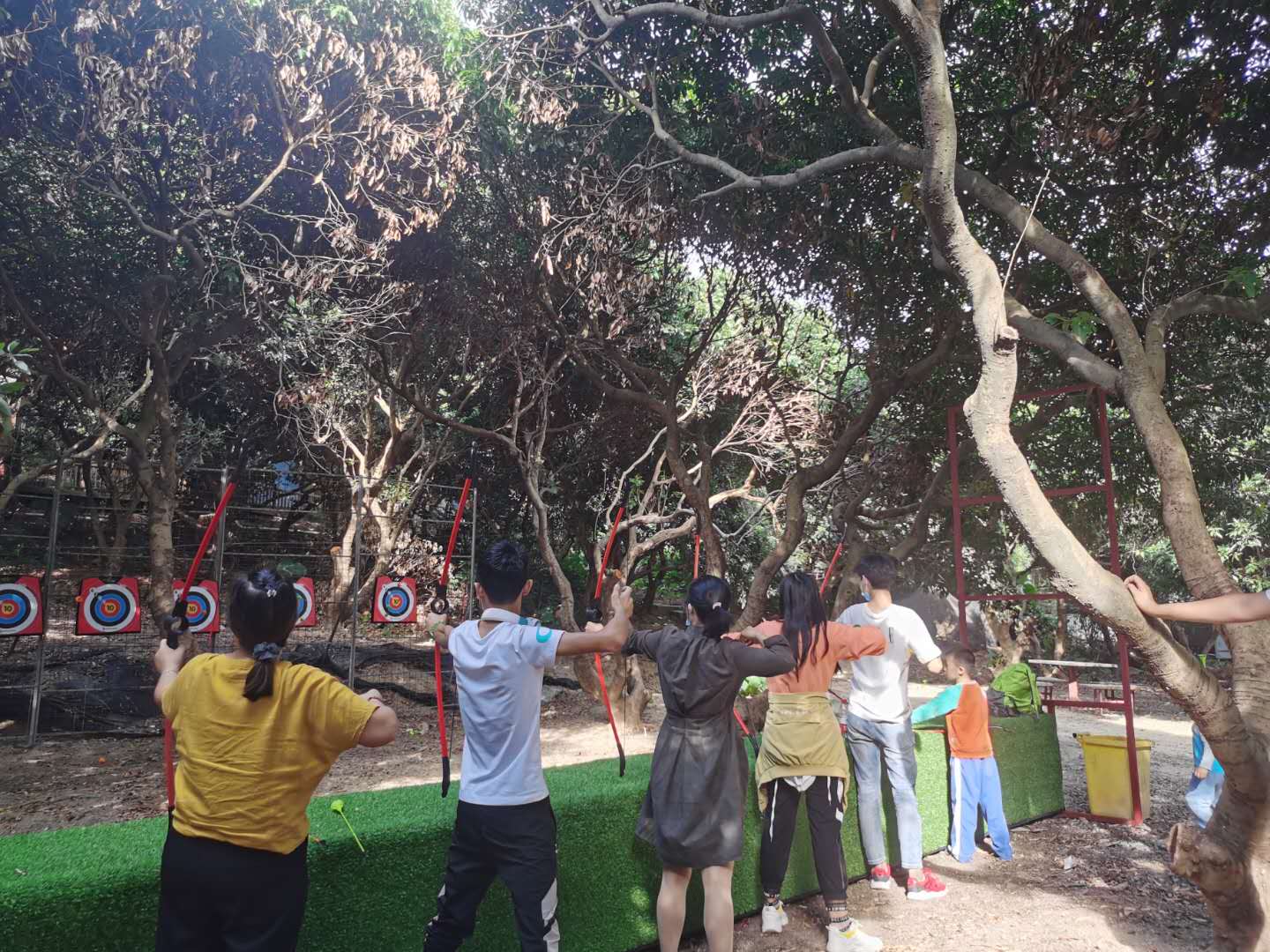 活动结束小伙伴们奔赴射箭场,最前面是高高的靶架,天兵照雪下玉关,虏箭如沙射金甲。