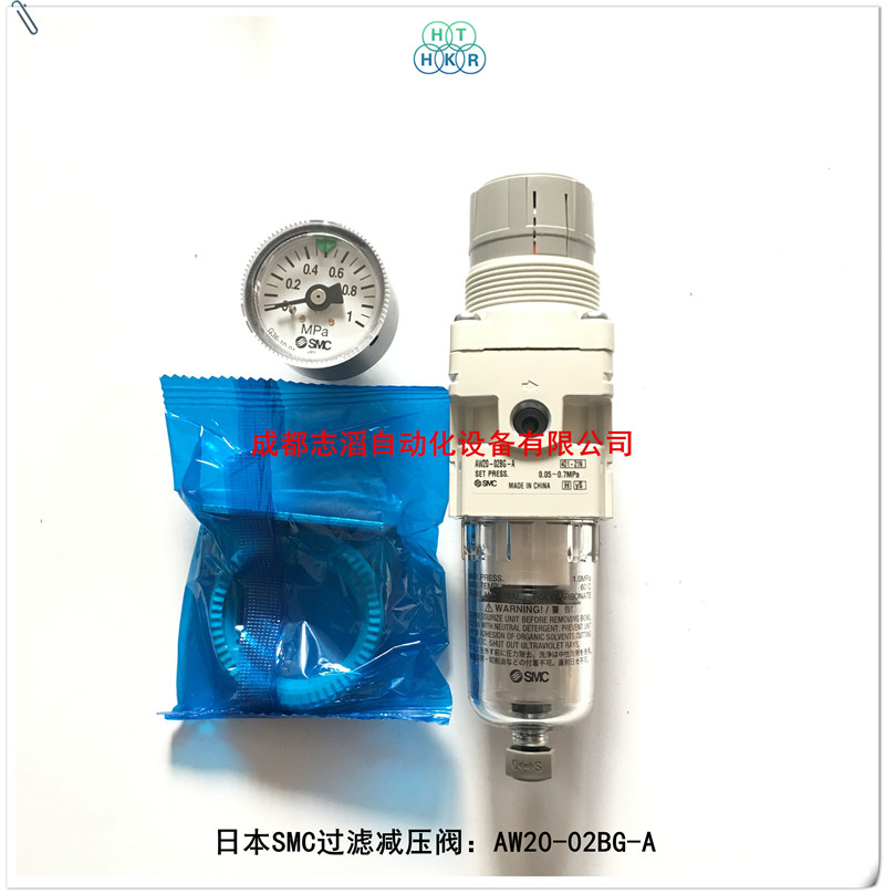AW20-02BG-A日本SMC过滤减压阀技术简介:连接口径为1/4、使用流体为空气、使用压力范围1mpa、设备压力为0.05-0.8mpa、压力表接口为1/8配压力表型号为G36-10-01、带安装托架型号为AW20P-270AS、溢流压力为设定压力为+0.05mpa时溢流为0.1、环境及流体温度范围-5到60摄氏度、过滤精度5um、过滤器和减压阀一体化,省空间,省配管、冷凝水驻留量8立方厘米、杯材质为聚碳酸酯、构造为溢流型、没有保护罩、产地为中国!