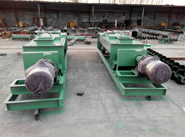 水喷淋均匀注入料内,在匀速搅拌的作用下,使粉尘加湿,加湿后的粉尘在多柱螺旋线性的推力作用下,从出料口缓缓送出,卸入机体外的粉尘运送装置。双轴粉尘加湿机通过控制加水量,已达到合适的湿度要求。SJ双轴粉尘加湿机采用两组螺旋叶片进行搅拌,具有搅拌效率高、占地面积少,螺旋叶片采用高耐磨特种合金或复合陶瓷,使用寿命长等特点。SJ双轴粉尘加湿机采用摆线针轮减速器传动,转动平稳,噪音低。双轴搅拌机从顶部进料,底部排料,结构合理。双轴粉尘加湿机各结合面之间的密封严密,运行平稳。双轴搅拌机设有加湿喷水系统,保证喷水均匀,调节供水量来满足需要。