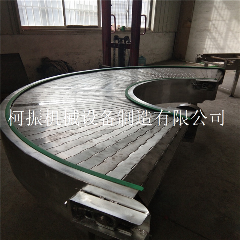 链板转弯输送机是一种使用非常广泛的输送流水线,运用于输送带与输送带之间弯角的连续或间歇运动来输送各种轻重不同的物品。适合中小型产品的组装或输送,可采用单链板,双链板,多层链板输送。