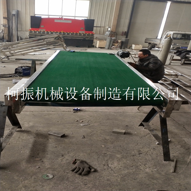 皮带输送机又称pvc带式输送机,广泛应用于家电、电子、电器、机械、烟草、注塑、邮电、印刷、食品等各行各业,物件的组装、检测、调试、包装及运输等。线体输送可根据工艺要求选用:普通连续运行、节拍运行、变速运行等多种控制方式;线体因地制宜选用:直线、弯道、斜坡等线体形式 输送设备包括:皮带输送机也叫带式输送机或胶带输送机等,是组成有节奏的流水作业线所不可缺少的经济型物流输送设备。皮带输送机按其输送能力可分为重型皮带机如矿用皮带输送机,轻型皮带机如用在电子塑料,食品轻工,化工医药等行业。皮带输送机具有输送能力强,输送距离远,结构简单易于维护,能方便地实行程序化控制和自动化操作。运用输送带的连续或间歇运动来输送100KG以下的物品或粉状、颗状物品,其运行高速、平稳,噪音低,并可以上下坡传送