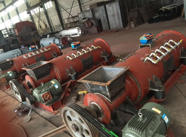 双轴粉尘加湿机链条传动:一、双轴粉尘加湿机工作原理:装有一对高强度的搅拌轴,轴上以一定角度及螺距分布着多片扇型搅拌叶片,两根搅拌轴反向旋转对加湿的干灰进行均匀搅拌、螺旋输送。其优点是搅拌效率高,系统密封严密,无飞灰外扬。减速机结构紧凑,占地面积小,传动平稳,噪音低,搅拌均匀,叶片耐磨性好,操作维修方便,运行可靠。