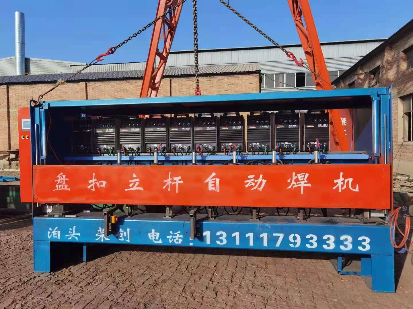 盘扣立杆自动焊机的设计科学,用PLC来调控各个执行机构的联动,从焊接需要着想每一步都环环相扣,文本显示简单易学。每个盘扣的焊处配有固定于同一机构上的双焊,由气缸驱使在直线导轨上同时进退。每把焊都可独立手调三维,使焊机与焊缝间保持最合理的角位。依立杆上需焊接轮扣的个数,可配多个焊架与数台焊机相联。在脚手架焊接机的有效焊接长度之内,可移动圆轨上尾座的锁位来对较短立杆的焊接之用。适用于盘扣立杆自动焊机上的套筒、菊花盘、盘扣的全自动焊接。左右两电极分别通过多层铜套与焊接变压器次级线圈的导体连接,焊接变压器的次级线圈采用循环水冷却。在焊接处的两侧及下方均有防护板,以免熔化金属溅入变压器及开关中。焊工须经常清理防护板上的金属溅沫,以免造成短路等故障。