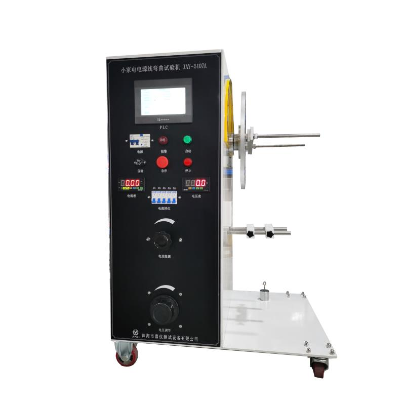 本装置符合GB4706-1第25.14条、IEC60335-1第25.14、VDE、UL等标准要求,适用于测试小家电(如咖啡壶/电烫斗等)、灯具等器具电源引线耐弯曲(弯折)性能, 可预置试验次数(六位显示),达到次数自动停机。 配置3KW功率调压器,可实现不同额定电流的电器的电源线测试。