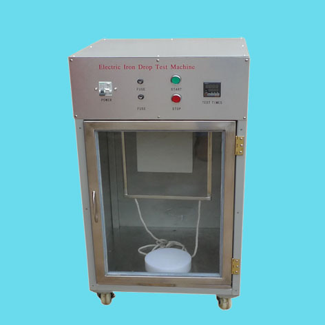 本装置符合GB4706-2第21.101、IEC60335-2-3第21.101等标准条款要求,适用于检验电熨斗在正常工作条件和额定输入电压的工作情况下的机械强度。通过电熨斗(除无绳电熨斗外)的手柄把电熨斗悬吊起来并使底板成水平位置,从40㎜高处将电熨斗跌落在厚度至少为15㎜、质量至少为15kg的刚性支承钢板上,试验以每分钟不超过20次的频率进行1000次。跌落试验每个回合保证电熨斗有15%的时间停留在钢板上,通过凸轮结构实现。