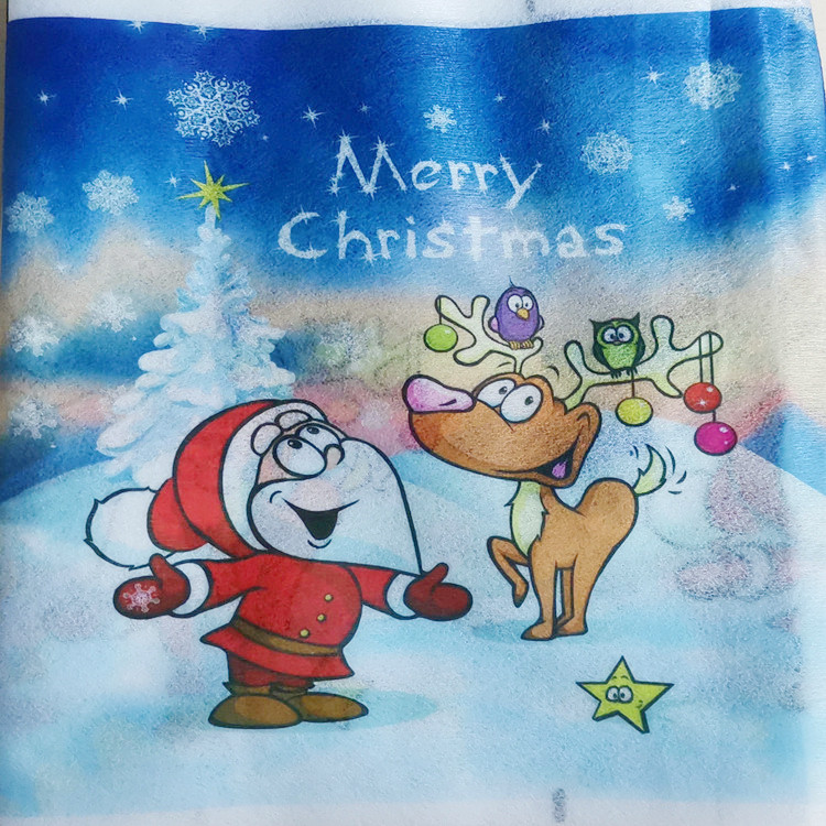 圣诞水刺无纺布 雪地圣诞老人款印花口罩专用布