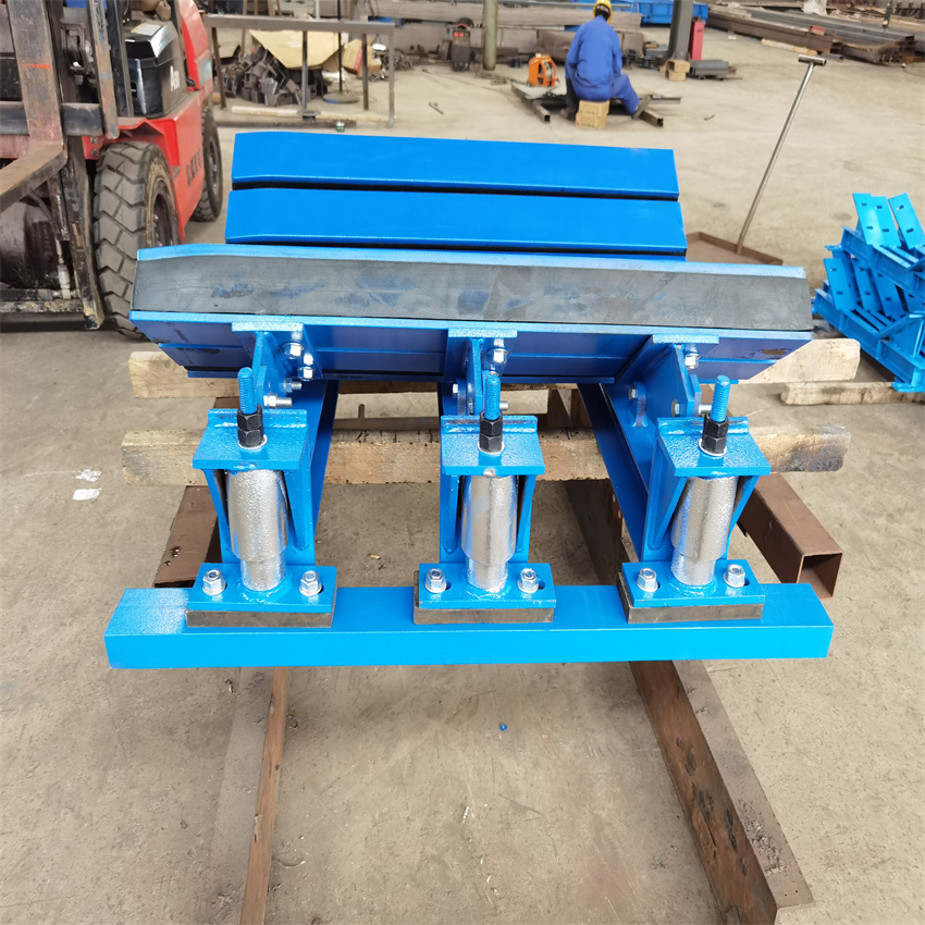 弹簧缓冲床 双弹簧减震缓冲床 在煤炭生产运输中,安全性和经济性要求不断提高,对胶带输送机中的缓冲装置的性能要求也提高。缓冲床直接承受大块物料的硬冲击,缓冲床上缓冲条的使用寿命和被冲击皮带的寿命大大降低,同时缓冲条的固定支架由于冲击力大,其使用寿命短、材料费用投入高、维护难度大,而且缓冲床出现故障后,影响正常生产。缓冲床承受大块物料冲击时,会将冲击力直接传到皮带机机架,导致机架寿命大大降低。由于硬冲击,缓冲不足,容易导致物料崩出,造成安全隐患并且污染现场环境。弹簧缓冲床 双弹簧减震缓冲床的设计参数计算