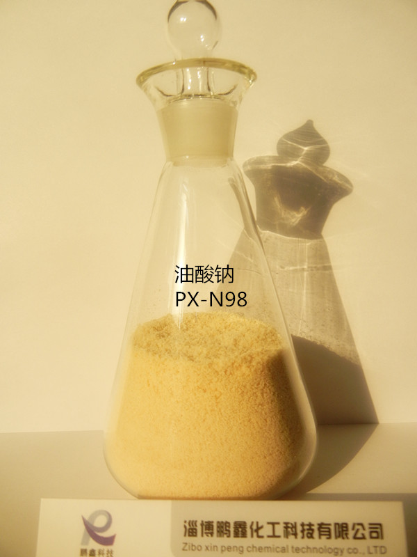 本品以优质植物性油酸为原料经连续皂化反应生成外观为浅黄色至黄色粉末,属于阴离子表面活性剂,是由憎水基和亲水基两部分构成的化合物。具有优良的乳化力,渗透力和去污力,有良好水溶解性,水溶液呈碱性。被广泛应用于浮选矿捕收剂、橡胶隔离、制皂、润滑剂、乳化剂、塑料稳定剂、泡沫混凝土发泡和稳泡、建筑防水方面新材料添加剂等多个领域。