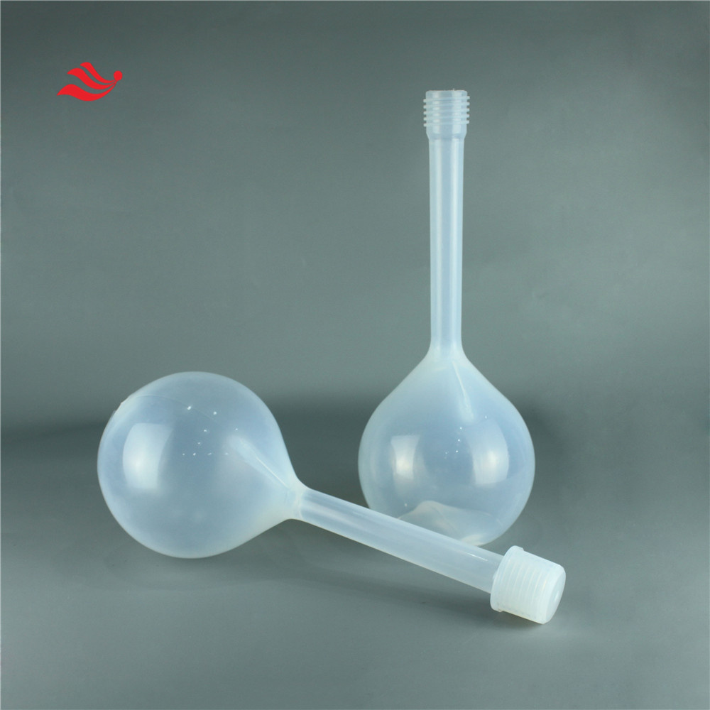 PFA容量瓶与FEP、四氟的相比稳定性好,是实验室定容的得力产品,塑料容量瓶因地区差异定容刻度线会有所影响,所以以使用方法重新定容为准!
