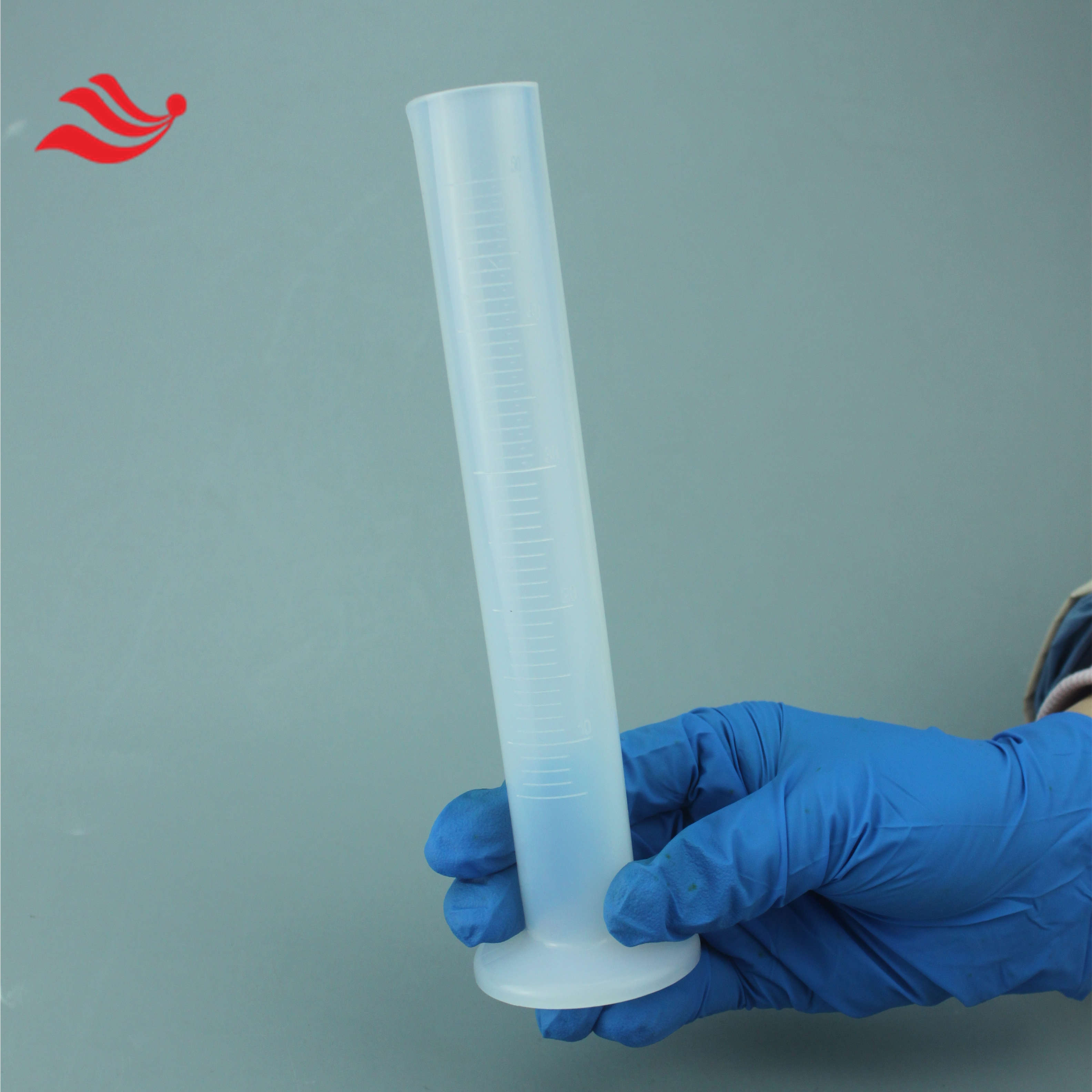 量筒是实验室中使用的一种量器,用途是按体积定量量取液体。为竖长的圆筒形,上沿一侧有嘴,便于倾倒。下部有宽脚以保持稳定。圆筒壁上刻有容积量程,PFA量筒刻度清晰,可方便观察液面,规格种类多可选择性多,内壁光滑不会挂水,且筒口液体倒出流畅。