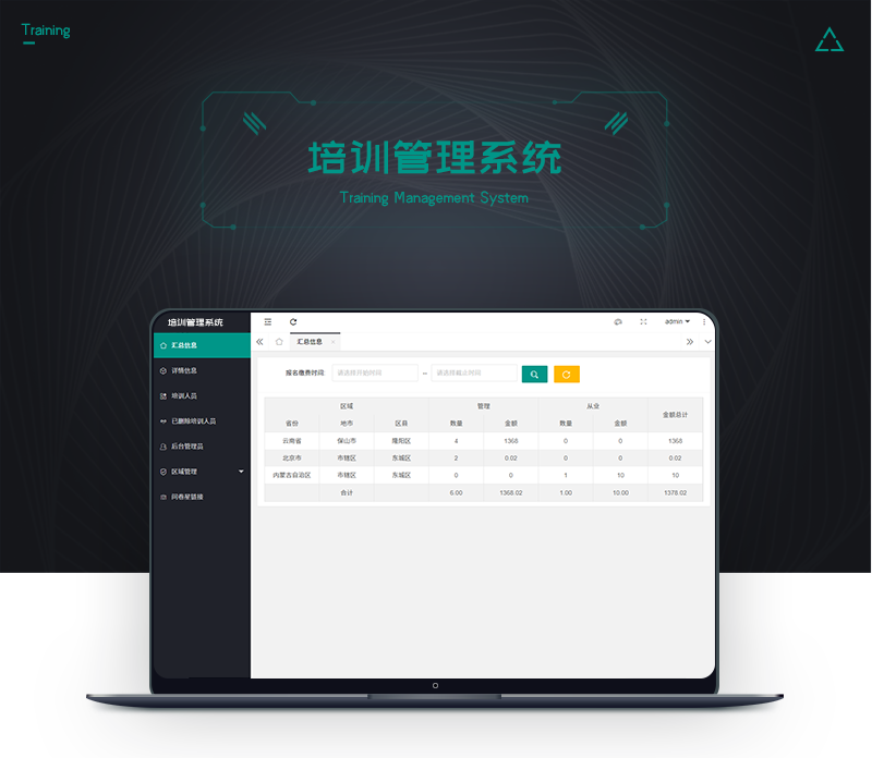 顺通培训管理系统包括了信息汇总、详细信息、人员培训、后台管理员、区域管理和问卷星链接几大板块,同时手机公众号也能同步使用这套系统。