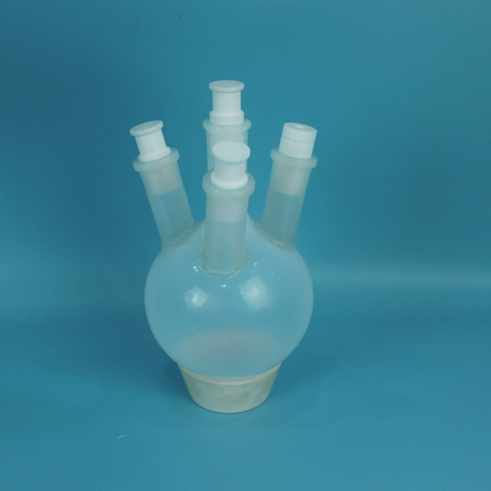 所有PFA三颈圆底烧瓶标准锥形外关节中心颈和两个额外的20°角侧颈。耐温260°C