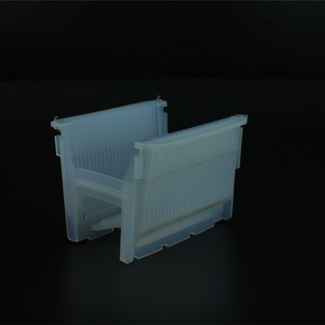 PFA花篮又叫PFA清洗花蓝 、 特氟龙卡匣、 特氟龙晶舟盒、特氟龙晶圆盒、特氟龙晶片清洗架、特氟龙晶圆架、特氟龙刻蚀花篮、特氟龙刻蚀清洗架、PFA显影花篮