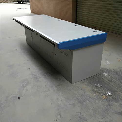 控制台、操作台的制作加工工艺为:剪钣、冲孔、折弯、电焊、打磨、酸洗磷化、静电喷涂等工艺流程。