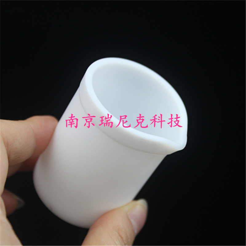 聚四氟乙烯(PTFE)尖内底烧杯:使用温度–200℃~+250℃,电热板上短期可耐300℃。需在石棉网上使用,不可接触明火、传热性能好、耐腐蚀、内壁光滑。