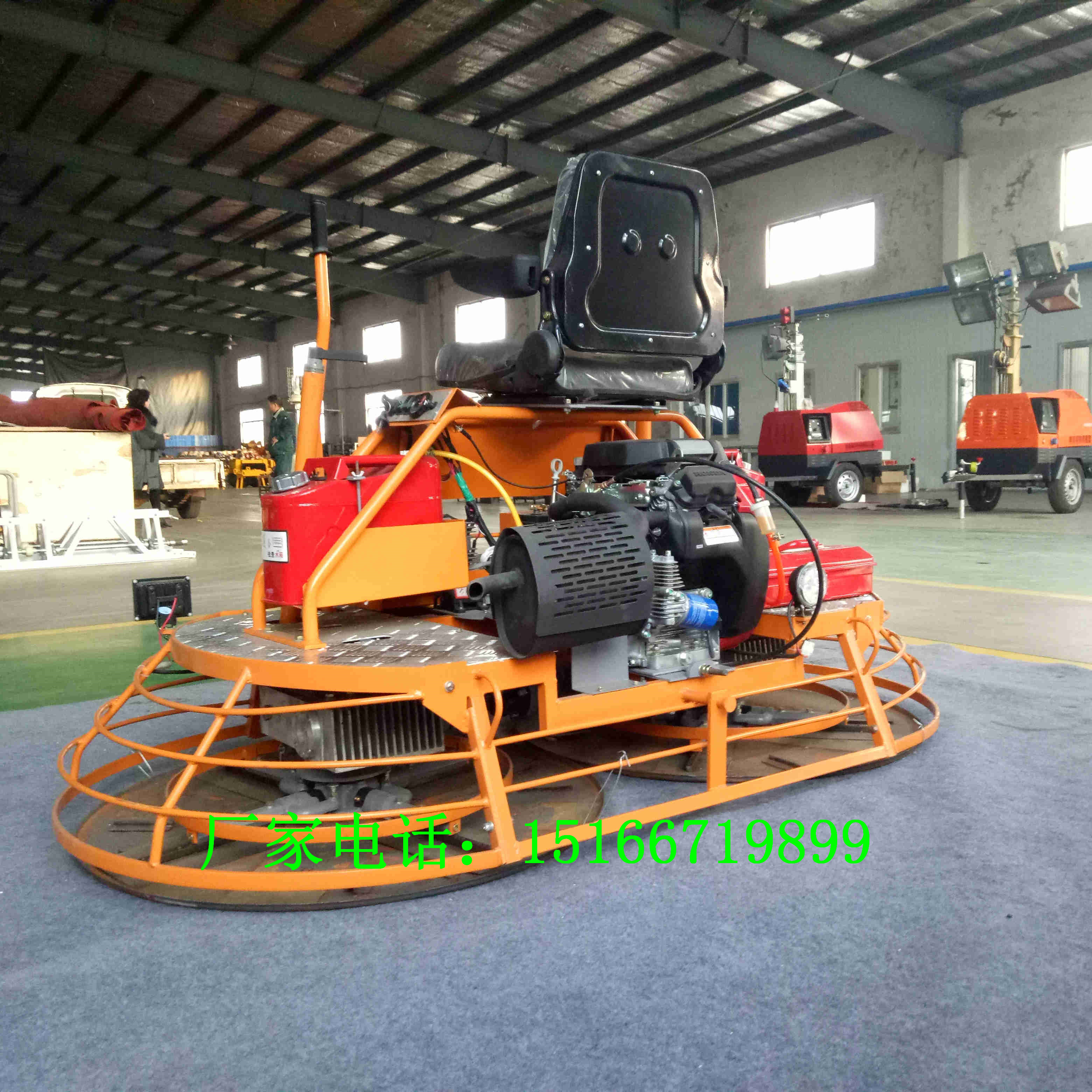 在现在这种快节奏的生活下如何才能可快的提高工作效率?2017年什么超贵?人工!!一台普通的手扶磨光机一小时能磨100²左右,一个人工就要200元左右。金尊座驾式收光机的工作效率是手扶抹光机的6倍左右。省人工是我们的一个优点,还有一个就是我们金尊座驾式磨光机收光完的质量高。本机自重300公斤底部配有加强圈,工作时效率高,磨光完效率好。金尊磨光机的底盘在原基础上,又有了新升级。磨盘不再分左右,磨刀也不再分正反面,您可以灵活转化。忘了说了,我们还有加大水箱哦!!