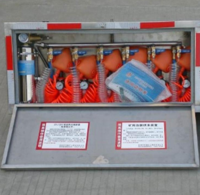 ZYJ-M6压风供水自救装置主要用于煤与瓦斯突出矿井下的防突救护。它主要安装在井下避难硐室,工作面的机巷风巷,掘进工作面,以及运输和回风巷,井底车场,各种站房的适当位置。根据煤矿规程的规定,井下安装矿井压风自救装置的个数不得少于井下全员的三分之一。当井下发生灾害时,工作人员迅速进入附近装有矿井压风自救装置的地点,打开装置,戴上呼吸面具,进行自救。