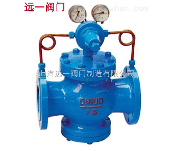 Yk43X/F-16C/25/40液化石油气减压阀属于先导活塞式减压阀。由主阀和导阀两部分组成。主阀主要由阀座、主阀盘、活塞、弹簧等零件组成。导阀主要由阀座、阀瓣、膜片、弹簧、调节弹簧等零件组成。通过调节调节弹簧压力设定出口压力、利用膜片传感出口压力变化,通过导阀启闭驱动活塞调节主阀节流部位过流面积的大小,实现减压稳压功能。