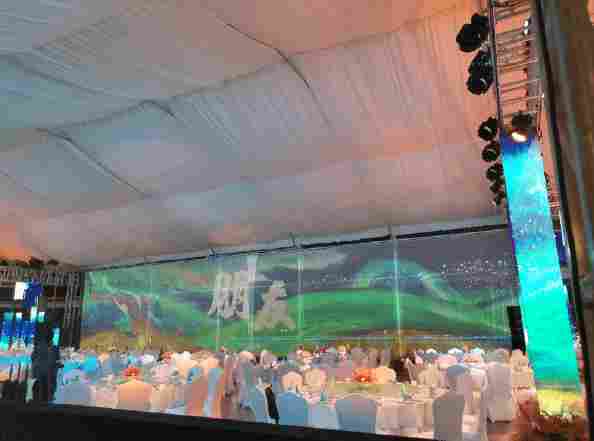 全息纱幕在活动中充当一种新颖的投影介质,需结合投影机产生3D立体画面效果,微介质材质以轻盈易安装的巨大优势攻克了以往其他成像介质的自重、不易安装、空间占用大等问题 其成像效果清晰、细腻。