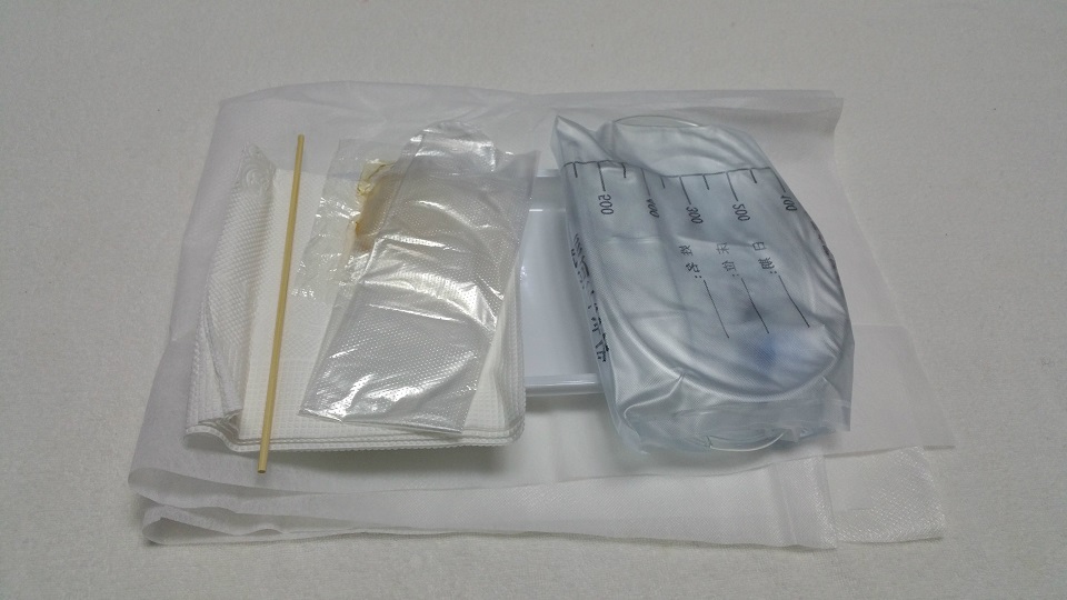 结构及组成:本产品由基本配置医用一次性灌肠器,一次性使用聚乙烯检查手套和选配配置医院无纺布敷料,医用护理垫,一次性使用直肠导管,一次性使用洞巾,一次性使用医用检查手套,一次性使用敷料镊组成。