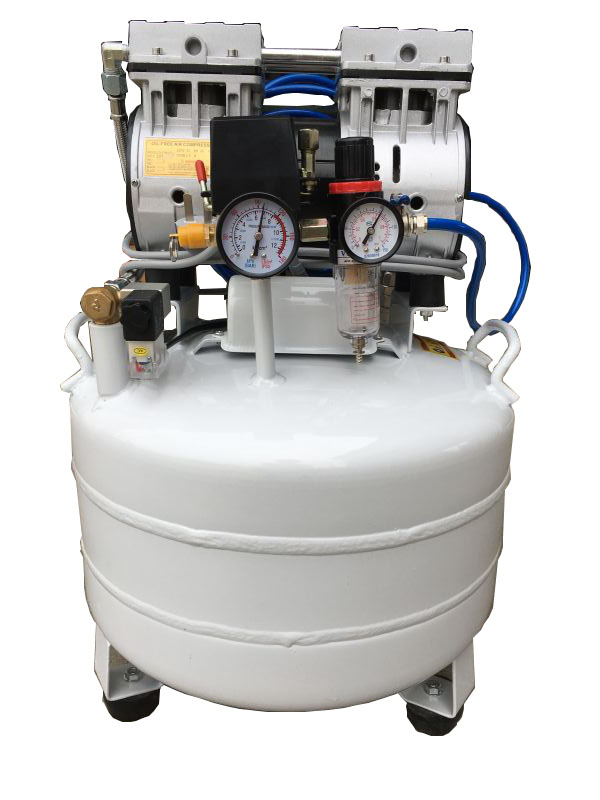 无油静音空气压缩机采用无油活塞式设计,保证压缩气体中无油分子,配水气分离系统,压力调节范围为0.2Mpa~0.8Mpa,气罐一次性储气量≧30L,主机气量≧115L/min,噪音≦52db。其适合在医 疗环境卫生条件下使用,主要是为需要气源的医 疗设备提供充足、洁净的气源,适用于牙科设备制氧机设备、呼吸机设备、医 用设备等。