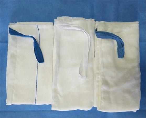 结构及组成:I型:由脱脂纱布加工制成;II型由夹有X射线可探测组件的脱脂纱布块加工制成,脚步均可缝制一根腹巾带。