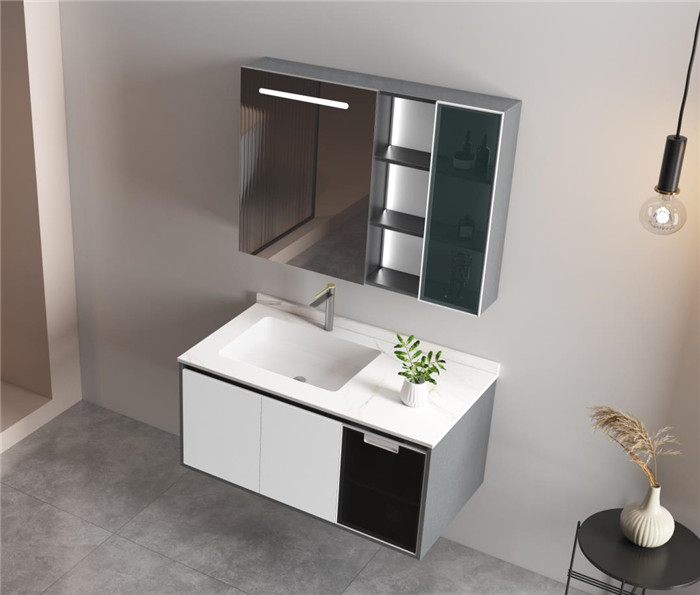 HOAA烤漆浴室柜,型号8114,材质实木、岩板、陶瓷、玻璃,主柜为烤漆门板,设计是左侧对开门储物,非抽屉,右侧黑色面板,抽屉模式,主柜台面颜色哥伦比亚白,材质岩板,工艺采用无缝对接瓷盆,美观大方,清理卫生***,镜柜采用左侧镜子,带灯,右侧为版开放储物格,共3层,余工大家居为该浴室柜设计了3种规格,具体参数与价格如下: