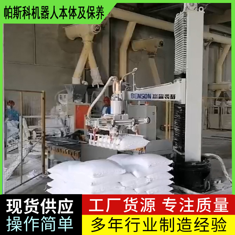 帕斯科山东机器人科技有限公司作为智能工厂服务商,从智能制造解决方案的提供,到工业电气产品的一站式采购,从智能制造培训到专业维护保养,围绕设备的智能升级改造、生产加工、设备保障、技能培训等多个方面,实现生产的智能、高效、环保和安全。帕斯科(山东)机器人科技有限公司经销的码垛机器人的品种齐全、价格合理。欢迎新老客户来我司洽谈合作。炭黑是一种轻、松而细的黑色粉末,附着性和染色性都很强,产品多用于墨水卡纸、玻纤、鞋材、水性制品等;主要用于建筑材料、色浆行业、粉末涂料、油漆行业使用等。炭黑长期接触会通过呼吸系统和皮肤对人体造成不良影响,因而在生产线后端的包装码垛岗位使用机器代替人工迫在眉睫。山东帕斯科无机颜料炭黑码垛机器人因其体积小、占地面积小、运作灵活操作简单、经济耐用被很好的应用在包装码垛中,该设备的使用优势为: