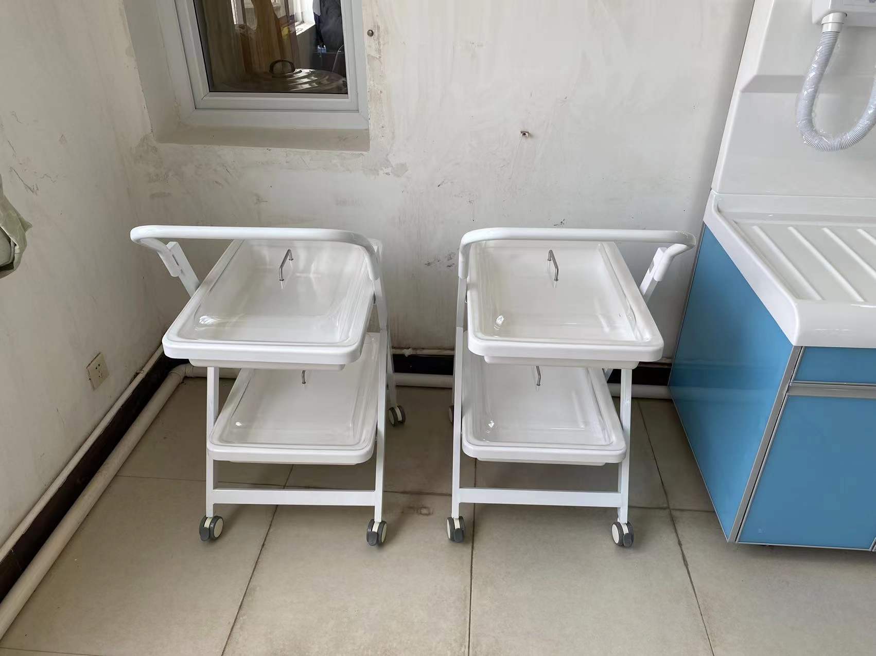 3由一次压模成型的高分子托盘、全钢烤漆车体、静音脚轮组成,具有耐腐蚀、不沾水、车行顺畅、取放方便等优点;