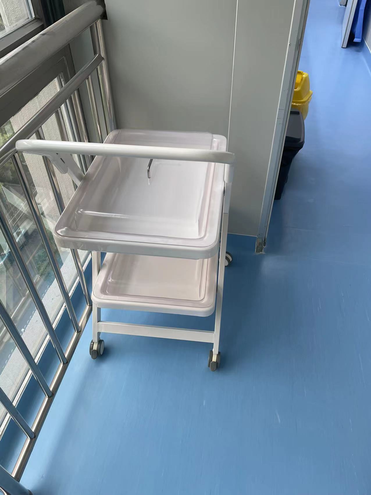 3由一次压模成型的高分子托盘、全钢烤漆车体、静音脚轮组成,具有耐腐蚀、不沾水、车行顺畅、取放方便等优点;