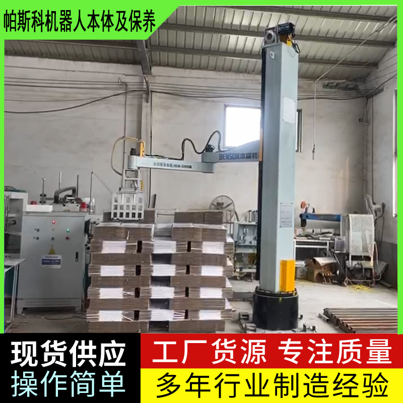山东帕斯科开发生产的立柱式机器人码垛机采用国记先近技术。多方位旋转搬运纸箱码垛机器人码垛速度快,干涉轮廓小,性能强,占地面积小,工作范围大,驱动关节少。