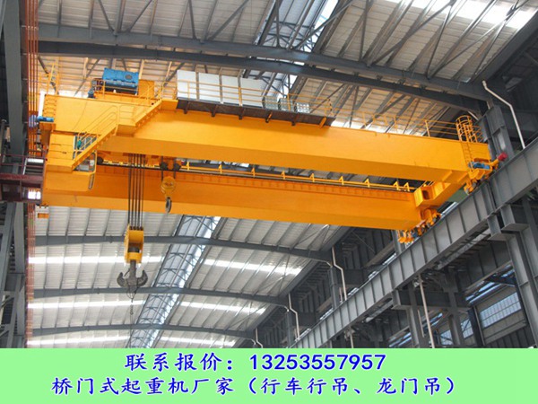 吊钩桥式起重机工作级别A3~A7,常用起重量为3~250t。适宜在环境温度-20℃~40℃,相对湿度不大于85%的工厂、库房及货场等处作装卸吊运作业,制止在易燃、易爆以及充满腐蚀性气体的环境中作业。