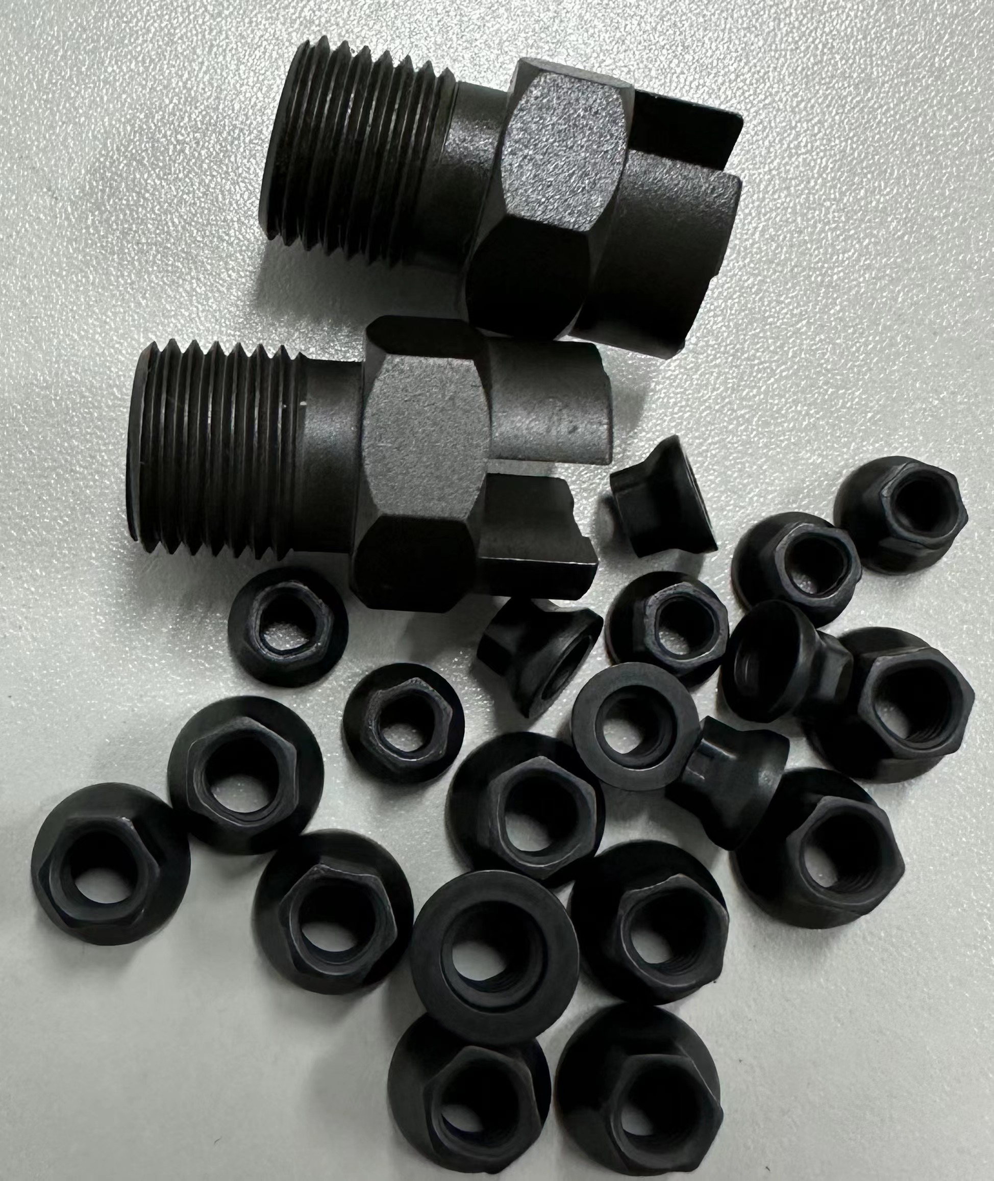 二硫化钼涂层、固体润滑干膜、热固化MOS2镀层、改性耐高温二硫化钼涂层抽钉,螺帽、螺栓,自锁螺母,铜基材螺母、使用传统的工艺喷涂二硫化钼,螺纹处附着不好,涂层易脱落,