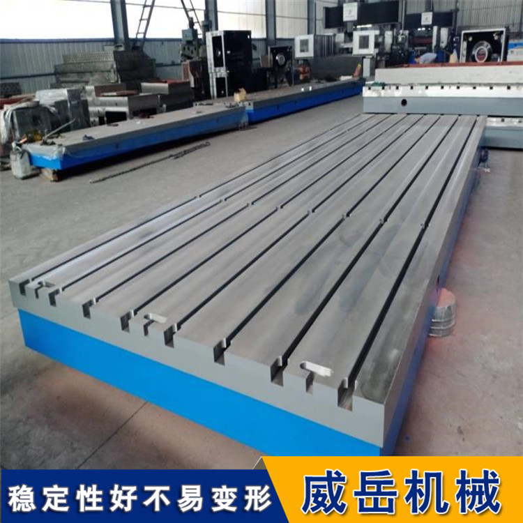 而再均布载荷作用下,其变形量只有0.024mm,完全大多数的焊接及装配加工的需要,其组建的精度高,大型铸铁平台孔中公差保证在0.05mm以内。这种高精度将会反映在用户所加工的产品中,因此此大型铸铁平台也可用作检具的基准平台。