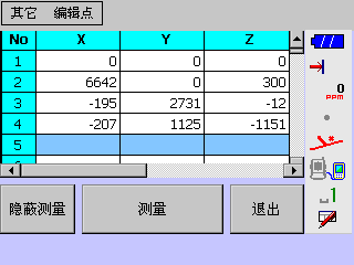 5. 实时显示实测数据与设计数据偏差转动全站仪瞄准目标,在全站仪测量软件中点击测量按钮,即开始驱动仪器进行测量。测量数据和与设计数据的相差值即显示在表格中