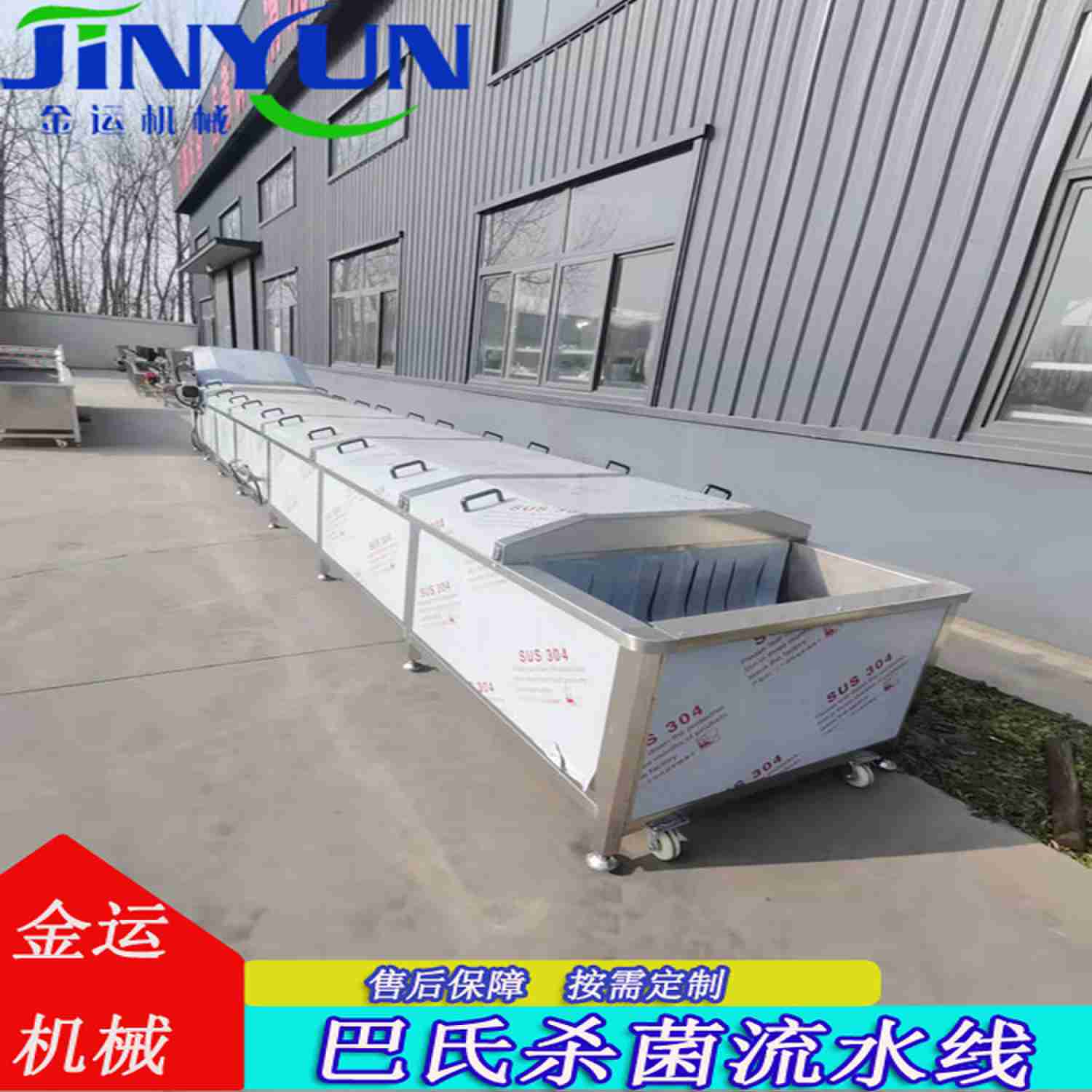 特点:采用食品级材料可靠。输送平稳,速度可调,物料随输送带的行进运动,能够避免对输送物的损坏。噪音较小,适合于工作环境要求比较安静的场合。结构简单,便于维护。能耗较小,使用成本低。设备配备上漂压网带,可以防止产品在水中因浮力作用产生上浮滞留现象。本机以热水为介质,分杀菌槽、冷却槽两部分。整体采用不锈钢制作,可根据包装物的要求对温度和时间进行任意调整。该机结构紧凑、操作方便、故障率低,加热方式采用锅炉蒸汽或锅炉热水,特别适合连续杀菌作业。设备采用手自控温系统,水质升温快、受热均匀、温差小温度可调,适合于不同产品的连续性巴氏杀菌。水浴式灭菌功能可有效的将物料均衡的混合在介质水中,提供了对物品的杀菌效果,可调速式输送系统可有效的控制产品的灭菌时间,合格的完成产品的灭菌工艺。