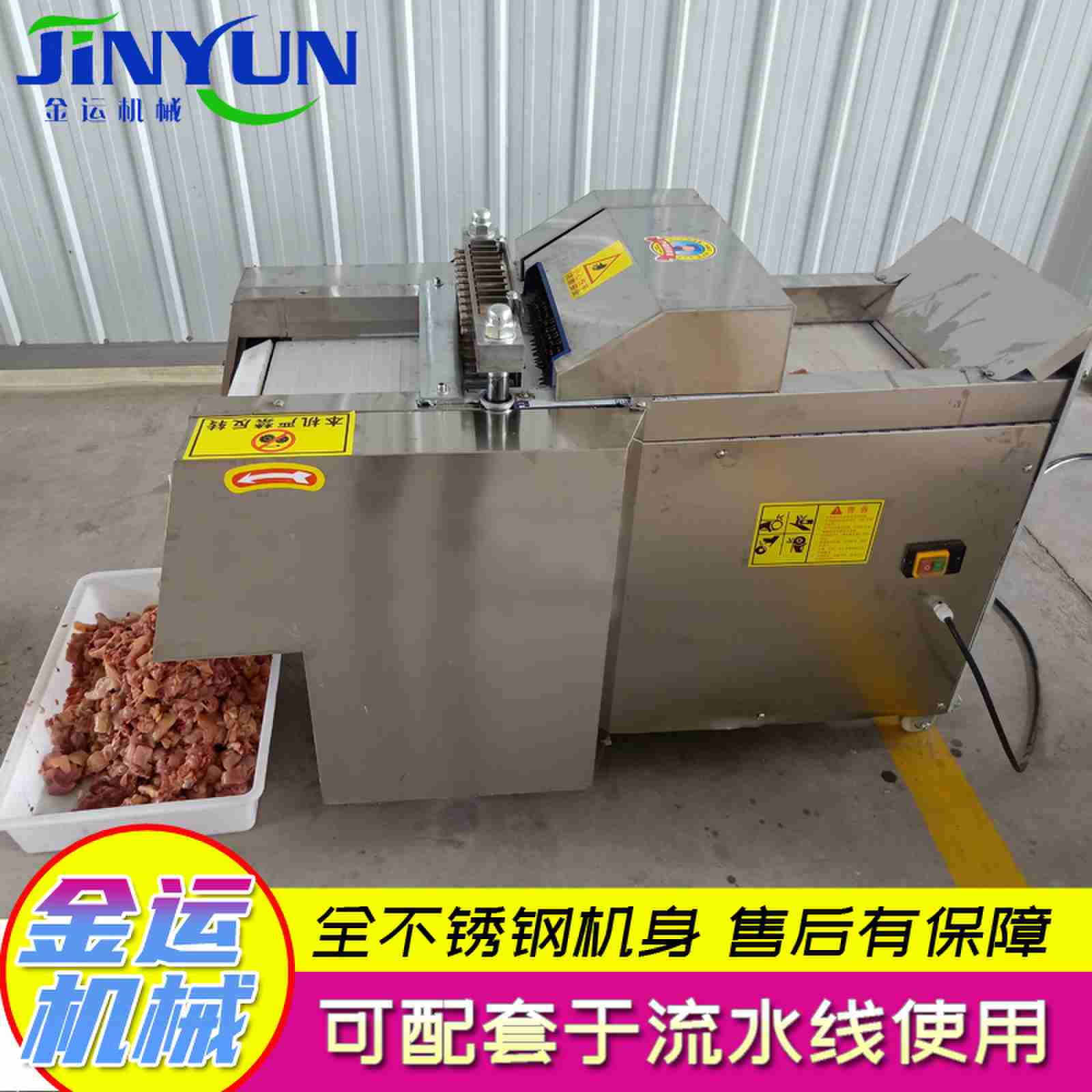 剁块机,属于前期的原料加工(分割)设备。主要部件均采用304不锈钢材料制造,防腐蚀性能好,表面经特殊处理,易清洗,美观大方,耐腐蚀,经久耐用,是肉类加工的理想设备。切割力很平稳、切割效率高、操作简便、便于清洗、维修方便。