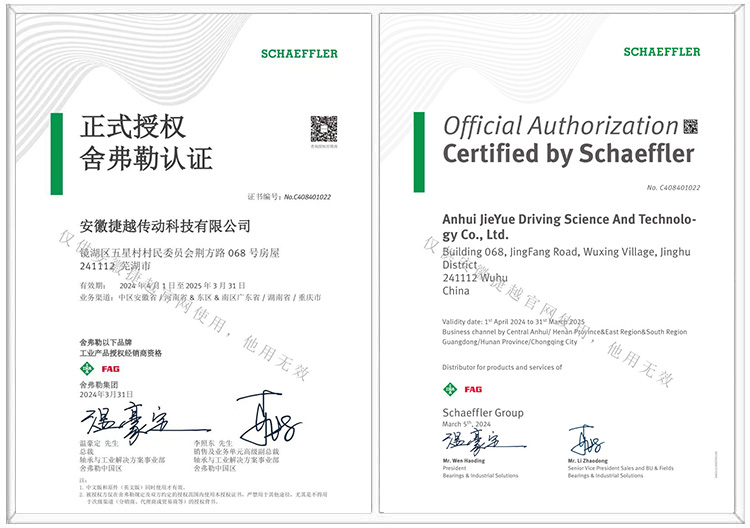 江苏捷越贸易有限公司是安徽捷越传动科技有限公司的下属子公司,安徽捷越传动科技有限公司是舍弗勒在安徽省的一级授权经销商,多年来致力于FAG/INA轴承的代理销售,服务于水泥行业客户,电厂以及钢厂客户,库存充足。公司长期与海螺水泥、新天山水泥、铜陵有色等集团合作。