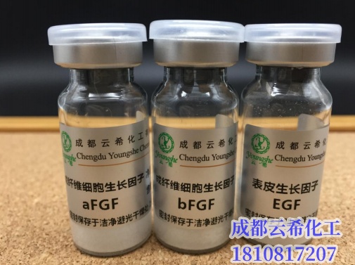 重组人酸性成纤维细胞生长因子简称为rh-aFGF,同rh-bFGF具有类似功效,在弱酸溶液状态下稳定性更佳,但活性相比bFGF偏弱。主要存在于表皮基底的角质形成细胞内,是重要的促细胞有丝分裂因子和血管生成因子,对来源于中胚层和神经外胚层的多种类型的细胞具有广泛的生物学活性。