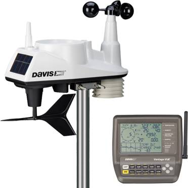 咨询电话010-62111044用途:Vantage Vue 无线自动气象站采用一体化设计,体积小,野外容易携带搬运,控制台具有大屏幕液晶图形显示,可实时显示当前的风速风向、空气温湿度、雨量、气压气象参数,通过配套的数据存储卡可进行数据存储,并可自动生成NOAA气象报告和趋势分析,配合软件更可以实现网络远程数据传输和网络实时气象状况监测。