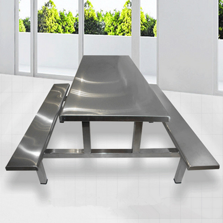 这款餐桌椅选用耐用的304不锈钢材质,配以人性化的连体设计。餐桌表面光滑平整,抗腐蚀性能良好,无论是南方潮湿的梅雨季节,还是东南亚炎热的气候,都能保持洁净如新。每天用餐时间结束后,保洁人员用抹布轻轻擦拭,就能让餐桌焕然一新,大大减轻了后勤工作的负担。
