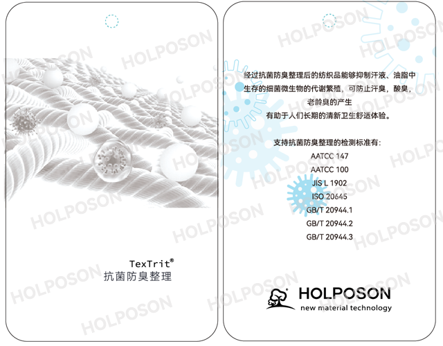 抗菌防臭整理剂HOLPOSON®CAPTAIN A-C是一种有机胍类高分子抗菌整理剂。适用于如棉、黏胶、涤纶、尼龙等天然、合成及其混纺织物。主要应用在服装、家纺、墙布、地毯、医用防护无纺布等产品.